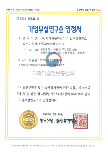 | 항목 | 기존 플라즈마를 | JC Plasma Arc-free Cold Plasma |